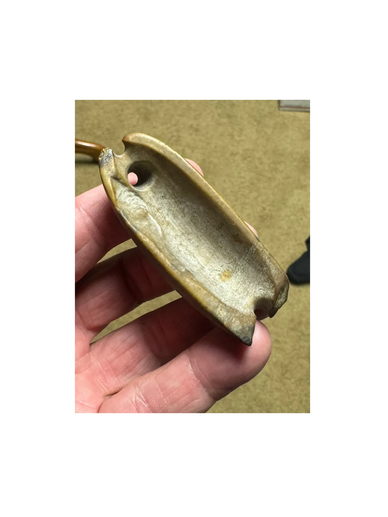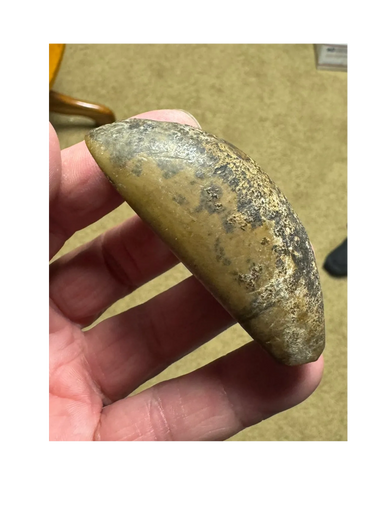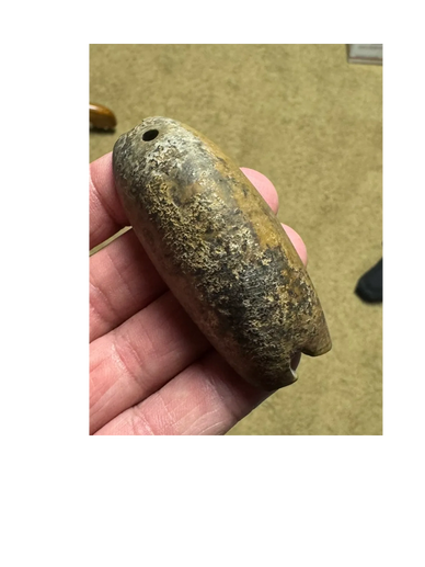 3" Tan Hardstone Boatstone, Found in Northern Indiana Ex- Gary Litherland. Well scooped out and salvaged. Extremely interesting piece. $495