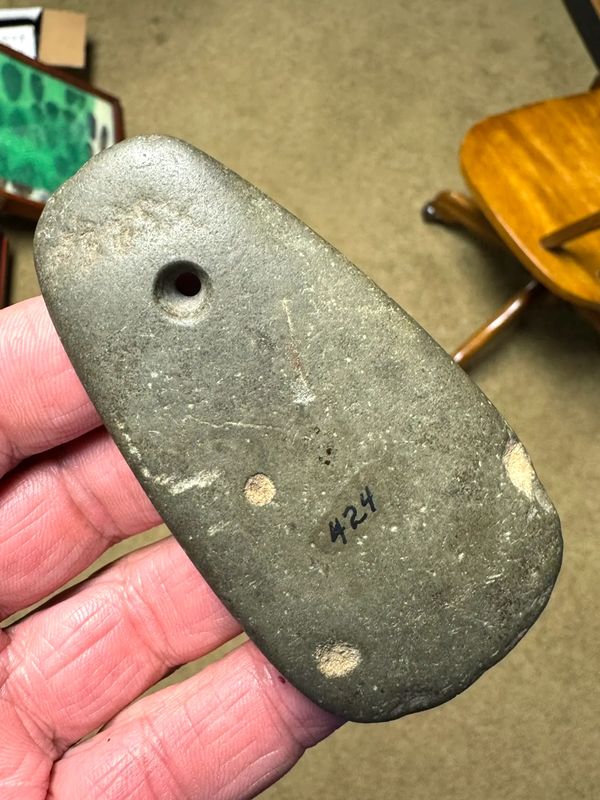3-3/4" Hardstone Pendant, found in Ross Co. OH. Ex- Nick Gatses, Ex- Orsary.Rare piece being made of Hardstone. $375 ON HOLD