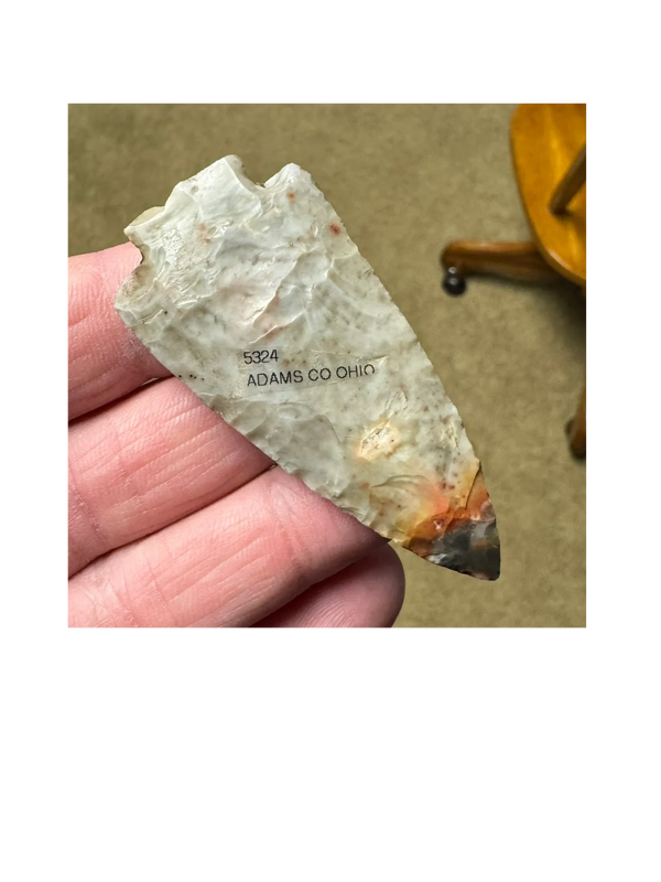 4-3/8" Coshocton Notched Base Dovetail, Found in Miami Co. OH, near Troy by Roscoe McKinney. Large and nice example of the type! $CALL